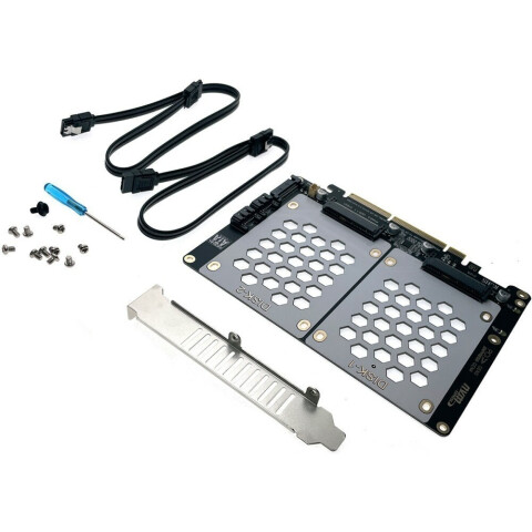 контроллер PCI-E 4.0 x16, позволяющий подключить к плате два накопителя U2 (SFF-8639), есть возможность установки вместо них SATA SSD, системная плата должна поддерживать функцию RAID PCI-E