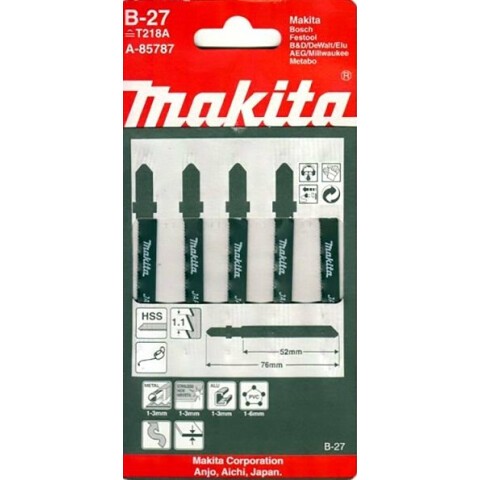 5 пилок по пластику и металлу толщиной 0.5-3мм, шаг зубьев 1.1мм, длина 76мм, рабочая длина 50мм, назначение: фигурный рез