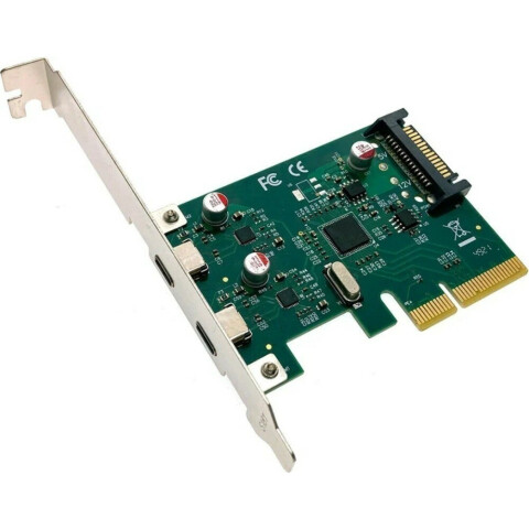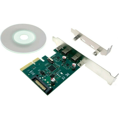 контроллер PCI-E x4, добавляет 2 внешних порта: USB 3.1 Gen2 Type-C, питание: SATA Power