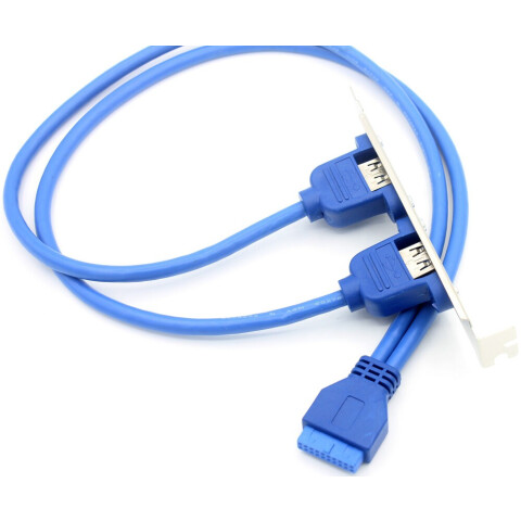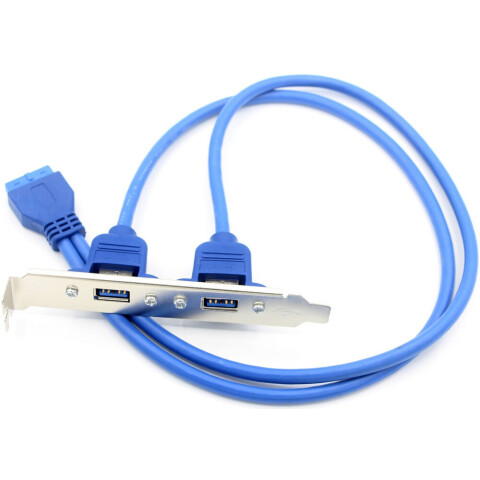 планка, добавляющая два порта USB 3.0, устанавливается в корпус, на место заглушки свободного слота PCI/PCIe, длина кабеля 0.5м