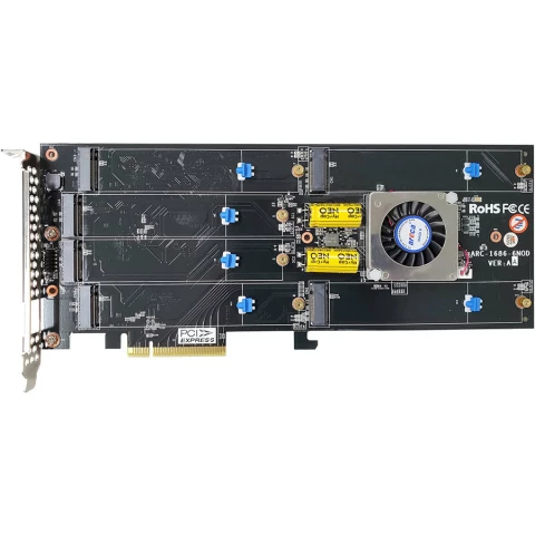 Бренд: Arecaтрехрежимный двухъядерный процессор ARM A15 1.6 ГГц ROC; PCIe 4.0 x8; 6 x M.2 коннектора(2 x NVMe[x4] + 4 x NVMe[x4]); RAID Level: 0, 1(Simple/Multi Mirroring), 10, Single Disk(Single/Dual/Triple) or JBOD