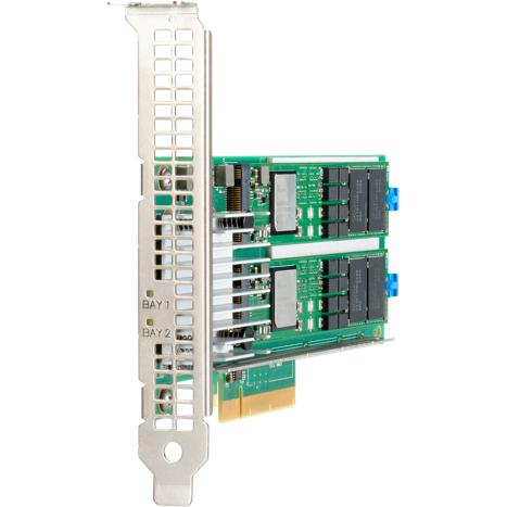 переходная плата PCIe 3.0 x8 - 2x M.2 NVMe, обеспечивает защиту RAID-1 для загрузочных дисков емкостью 480 ГБ в серверах HPE ProLiant и системах HPE Apollo
