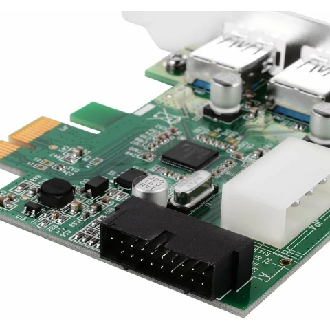 контроллер PCI-E x1, два внешних порта USB 3.0, один внутренний USB 3.0 (19pin), разъем дополнительного питания Molex, чипсет: VL805
