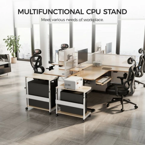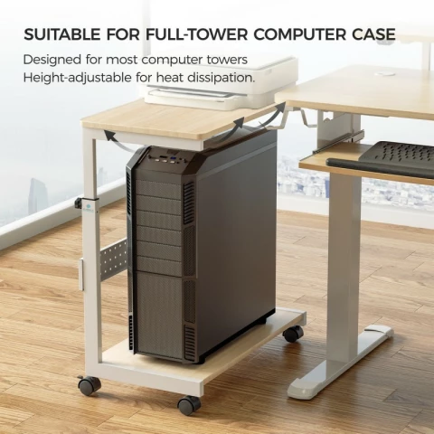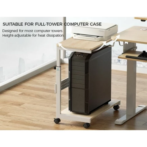 подставка для системного блока регулировкой по высоте, вращающиеся на 360° колёсики, специальный коврик для мыши в комплекте, двухэтажный дизайн подставки идеален для использования и в качестве подставки и приставного столика