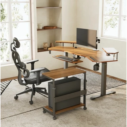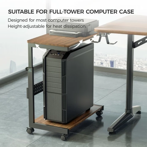 подставка для системного блока регулировкой по высоте, вращающиеся на 360° колёсики, специальный коврик для мыши в комплекте, двухэтажный дизайн подставки идеален для использования и в качестве подставки и приставного столика