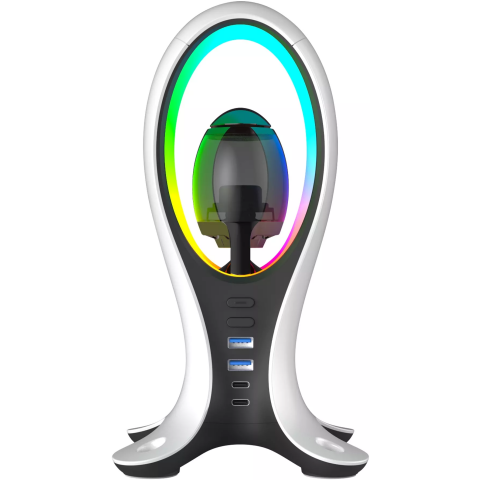 подставка для наушников, встроенная RGB-подсветка (11 режимов), динамик, микрофон, 2x USB Type-A, 2x USB Type-C для подключения питания и внешних устройств, режим TWS, кабель 1.5 м