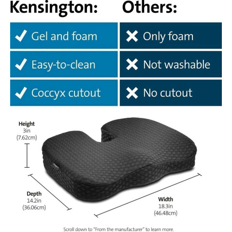 Бренд: Kensingtonподушка для кресла с охлаждающим эффектом и эффектом памяти, обеспечивает отведение тепла, наполнение из пенополиуретана с сотовой структурой, тканевая обшивка, снижает нагрузку на позвоночник, противоскользящее основание