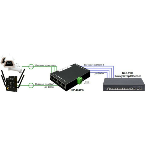 PoE-инжектор 10/100/1000 Мбит/с, 802.3at/af, 4 порта 30 Вт, БП 48-56VDC внешний, 0°C... 50°C
