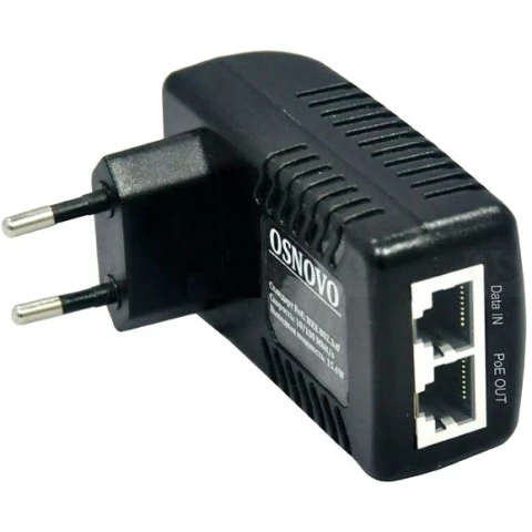PoE инжектор Fast Ethernet ,стандарт PoE IEEE 802.3af, автоопределение PoE устройств, мощность PoE 15.4W. Вх. RJ45(10/100 Base-T), вых. - RJ45(10/100 Base-T, PoE, IEEE 802.3af), питание AC100-240V, уст. на эл. розетку
