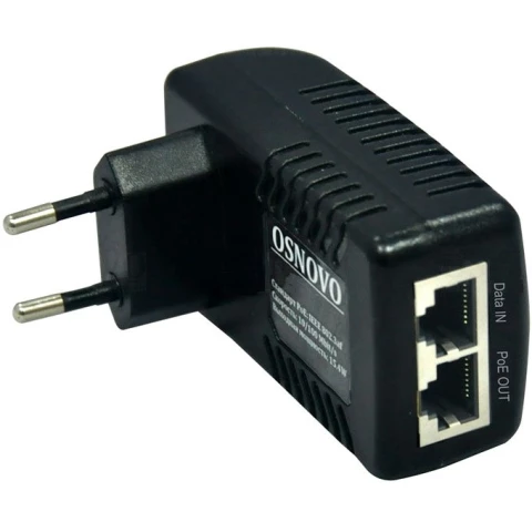 инжектор PoE, напряжение 50V (конт. 4,5(+), 7,8(-)), мощность до 15.4W, питание и данные передаются по сет. кабелю одновр., порты: вх. - 1 x RJ45(10/100 Base-T), вых. 1 x RJ45(10/100 Base-T, PoE, 50V), совместим с устр-ми стандарта PoE IEEE 802.3af/at
