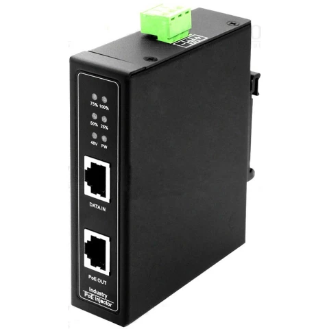 промышленный PoE-инжектор на DIN-рейку, стандарты PoE IEEE 802.3af/at, автоматическое определение PoE устройств, мощность PoE до 30W, поддержка скорости 10/100/1000Base-T