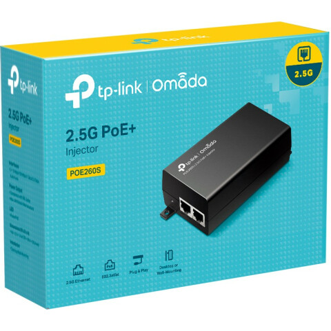 инжектор PoE+, 2 порта RJ-45 до 2.5 Гбит/с, поддержка стандартов IEEE 802.3i, 802.3u, 802.3ab, 802.3bz, 802.3af, 802.3at, до 30 Вт, до 100 метров