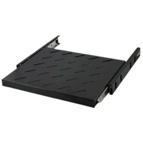 выдвижная полка высотой 1U с боковым креплением для рэковых шкафов 19", перфорированная, расстояние от стены: 2.7-50.8 см, глубина: 600 мм, нагрузка: 25 кг, чёрная