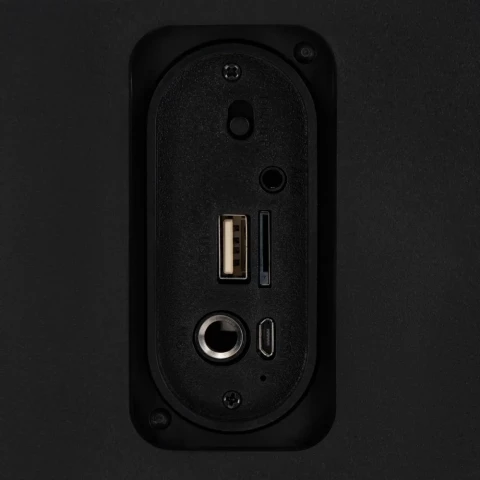 портативная акустика моно, мощность 40 Вт, корпус из пластика, Bluetooth, USB, питание от батарей, поддержка карт памяти, радиотюнер