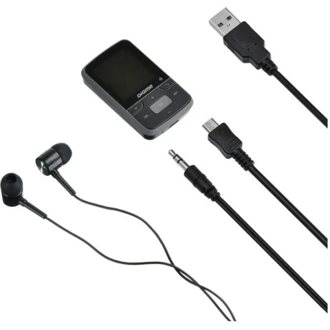 цифровой плеер, 16 Гб, для занятий спортом, Bluetooth, цветной экран 1.5", просмотр видео, карты памяти microSD, радиоприемник, время работы 20 ч, вес 27 г, размеры 37x59x18 мм, диктофон