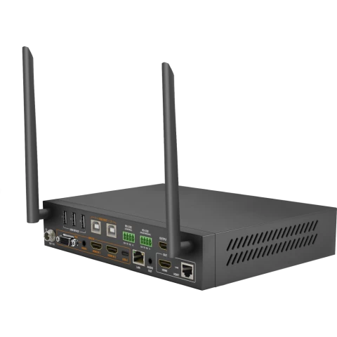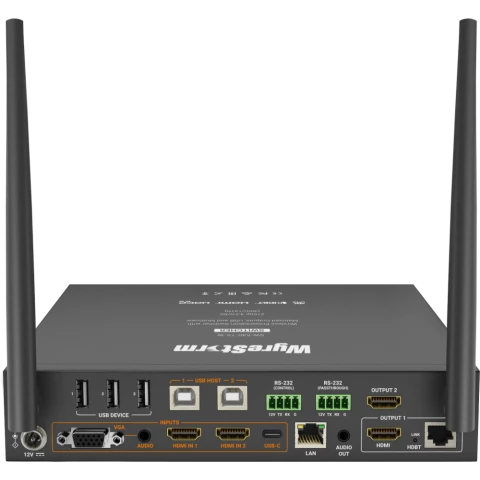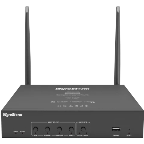 Бренд: WyreStormпрезентационный коммутатор для конференц-залов и переговорных комнат, 4K 30 Гц, до 40м, входы: 2x HDMI, 1x VGA, 1x USB-C, выходы: 1x HDMI, 1 x 3.5мм, 1x HDBT, скорость передачи: 10,2 Гбит/с, 4x USB 2.0, Wi-Fi, AirPlay