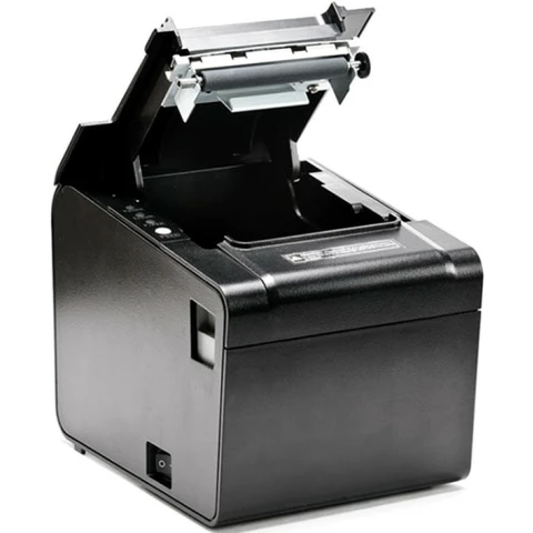принтер для печати чеков; 8 точек на мм, 576 точек в линии, разрешение: 203 dpi; скорость печати: 250 мм/сек; ширина печати: 72 мм; резак, лоток, интерфейсы: USB, RS-232 (COM), RJ-45