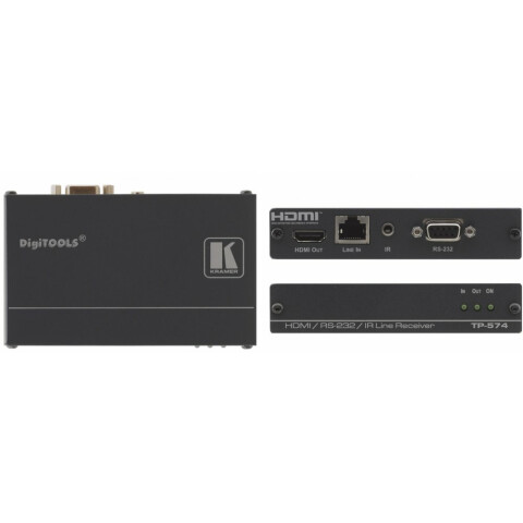 приёмник сигнала HDMI, двунаправленных сигналов интерфейса RS-232 и сигналов инфракрасного управления по кабелю на витой паре, ск. передачи данных 4.95 Гбит/с, размер DigiTOOLS (для установки в 19" стойку RK-3T)