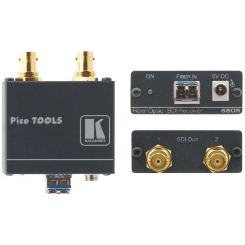 приемник сигнала HD-SDI 3G по волоконно-оптическому кабелю; работает с передатчиком 690T (тов. 657442), двухканальный