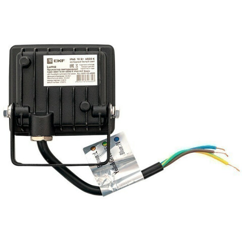 Бренд: EKFпрожектор на дуге крепления, источник света: светодиоды, мощность 10 Вт, холодный белый цвет, цветовая температура 6500 K, световой поток 800 Лм, до 50000 ч работы, IP65