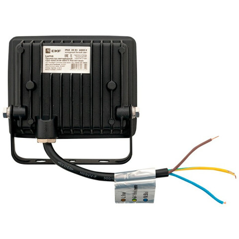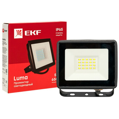 Бренд: EKFпрожектор на дуге крепления, источник света: светодиоды, мощность 20 Вт, холодный белый цвет, цветовая температура 6500 K, световой поток 1600 Лм, до 50000 ч работы, IP65