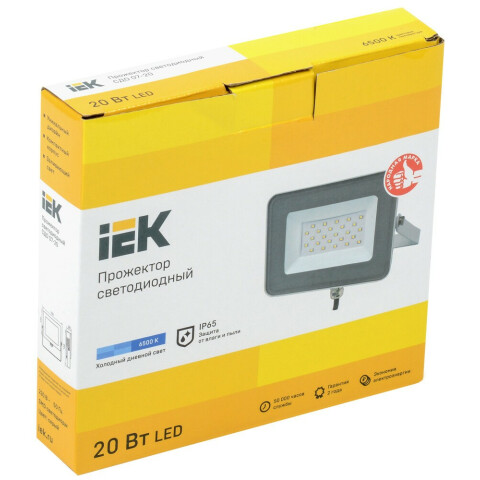 прожектор на дуге крепления, источник света: светодиоды, мощность 20 Вт, цветовая температура 6500 K, световой поток 1800 Лм, до 50000 ч работы, IP65