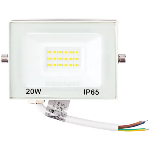 прожектор на дуге крепления, источник света: светодиоды, мощность 20 Вт, тёплый белый цвет, цветовая температура 2700 K, световой поток 1600 Лм, IP65