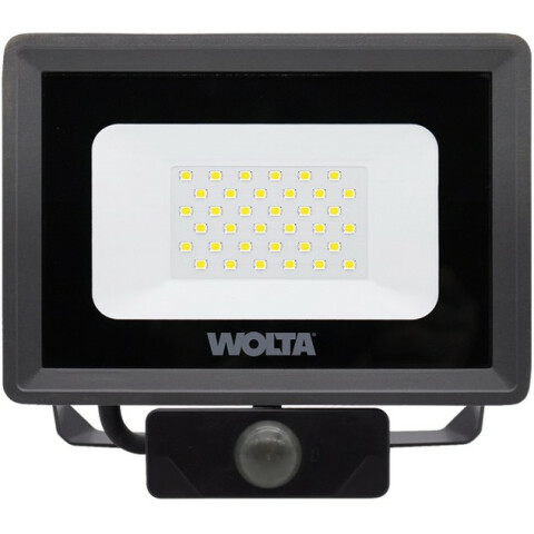 прожектор на дуге крепления, источник света: светодиоды, мощность 30 Вт, холодный белый цвет, цветовая температура 5700 K, световой поток 2700 Лм, датчик движения, IP65