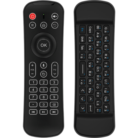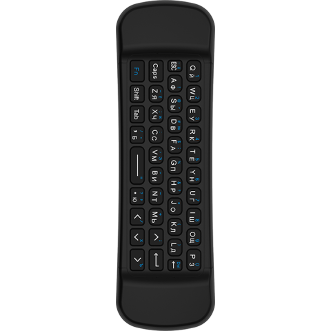 универсальный пульт дистанционного управления, совместимость: Smart TV/Windows/Mac OS/Android OS/Linux OS, позволяет управлять до 2 уст., USB-приемник до 10м, питание: 2x AAA, 123г