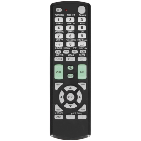 пульт дистанционного управления, универсальный, количество кнопок: 32, интерфейс: IR (инфракрасный), питание: 2хААА, число одновременно управляемых устройств: 1