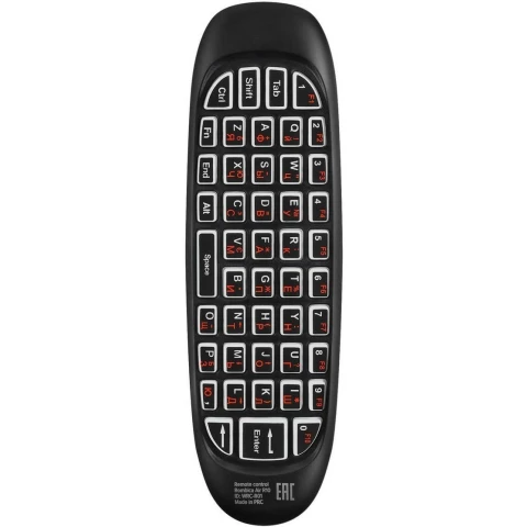 для телевизора, проектора, ТВ приставки, ПК, универсальный, количество кнопок 57, QWERTY-клавиатура, аэромышь, подсветка клавиш, голосовое управление, чёрный