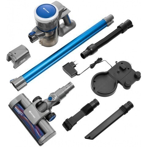 пылесос 2 в 1, сухая уборка, время работы от аккумулятора: 35 мин, составная труба, фильтр тонкой очистки, мощность всасывания: 60 Вт, потребляемая мощность: 120 Вт