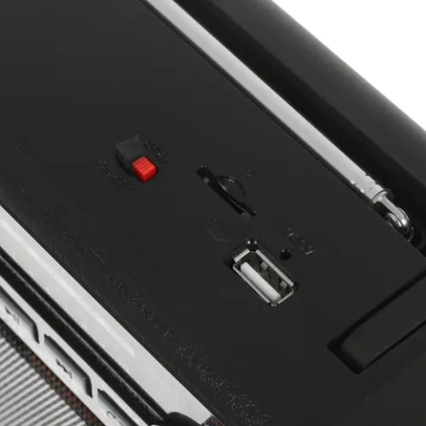 переносной радиоприёмник, приём FM, AM, аналоговая настройка частоты, 6 Вт, поддержка USB, microSD