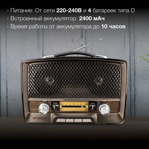 переносной радиоприёмник, приём FM, СВ, AM, аналоговая настройка частоты, 12 Вт, поддержка USB, microSD, питание: 4xD