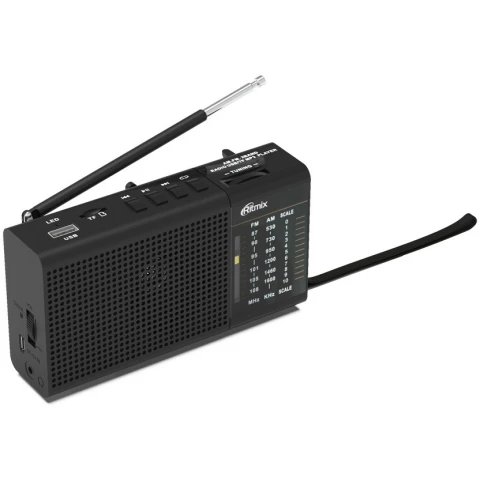 переносной радиоприёмник, приём FM, СВ, аналоговая настройка частоты, разъём для наушников, поддержка SD, USB