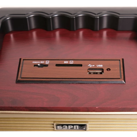 переносной радиоприёмник, приём УКВ, СВ, КВ, аналоговая настройка частоты, 6 Вт, поддержка SD, USB, microSD, питание: 4xR20, AUX