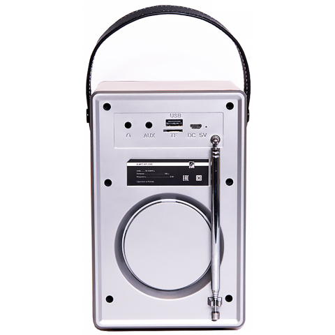 переносной радиоприёмник, приём УКВ, 5 Вт, разъём для наушников, поддержка USB, microSD, питание: аккумулятор, AUX