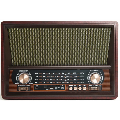 стационарный радиоприёмник, приём УКВ, СВ, КВ, аналоговая настройка частоты, 5 Вт, поддержка USB, microSD, питание: 3xR20, AUX