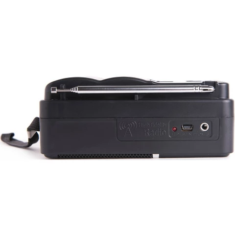 переносной радиоприёмник, приём КВ, СВ, УКВ, аналоговая настройка частоты, разъём для наушников, питание: D