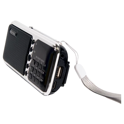 переносной радиоприёмник, приём FM, УКВ, цифровая настройка частоты, разъём для наушников, поддержка SD, USB