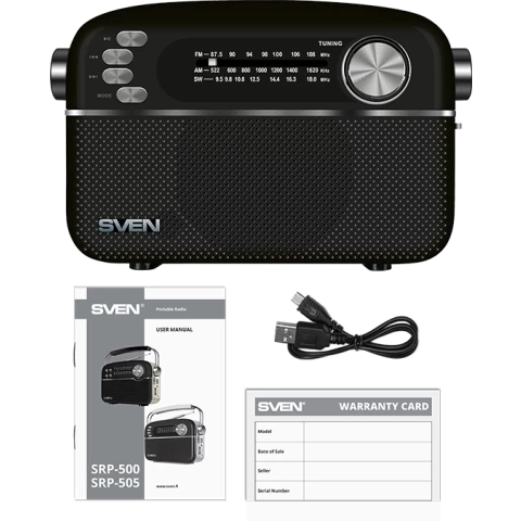переносной радиоприёмник, приём FM, СВ, AM, аналоговая настройка частоты, 3 Вт, поддержка USB, microSD