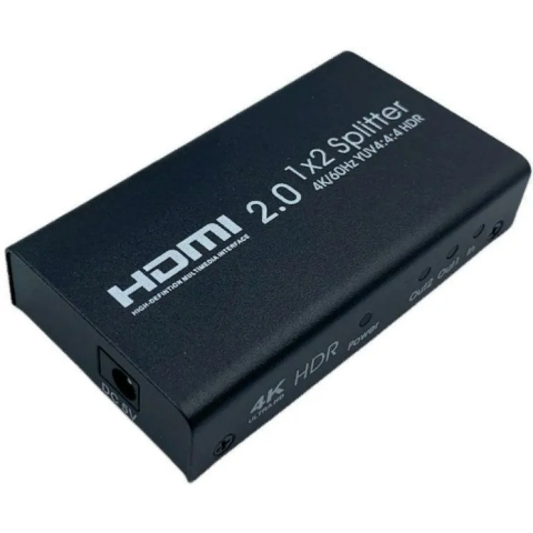 сплиттер HDMI сигнала с усилителем, вход HDMI (F), выход 2 х HDMI (F), версия HDMI 2.0, цвет чёрный