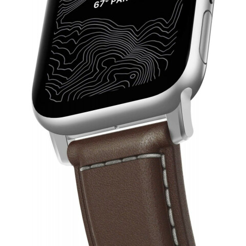 ремешок для Apple Watch 42/44мм, натуральная кожа, цвет темно-коричневый, застежка серебристый