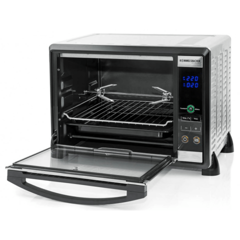 объём камеры 30 л, режимы: верхний нагрев, нижний нагрев, размораживание, конвекция, верхний+нижний нагрев, максимальная температура нагрева: 230 °C, электронный таймер, внутренняя подсветка, сенсорное управление, дисплей
