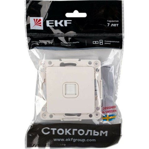 розетка компьютерная, 1 порт RJ-45, серия Стокгольм, IP20, механизм, защитная шторка, встраиваемый монтаж