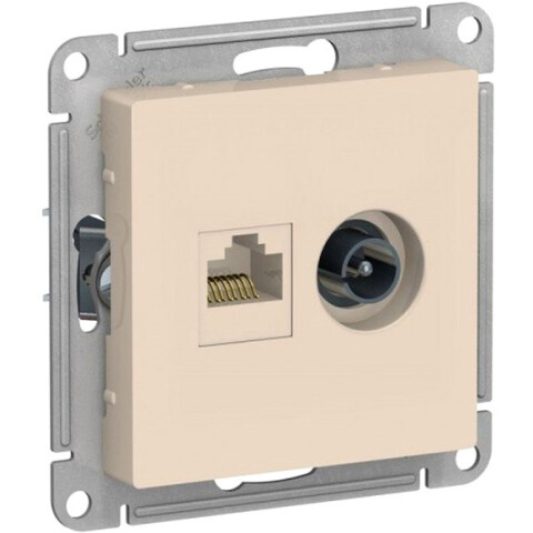 розетка компьютерная + телевизионная, RJ-45 кат. 5e, встраиваемая, IP20, бежевая