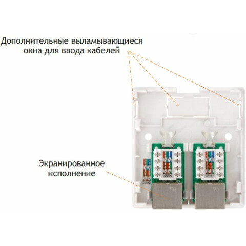 настенная двухпортовая сетевая розетка RJ-45/8PC8 категории 5e, экранированная, схема разводки: T568A/B, белая