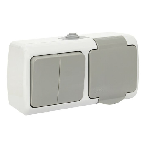 накладной блок, горизонтальный, 1 розетка, с крышкой, 2 клавиши, IP54