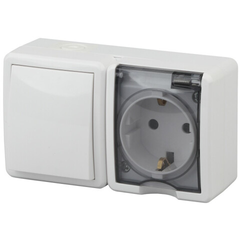 накладной блок, горизонтальный, 1 розетка, с крышкой, 1 клавиша, IP54