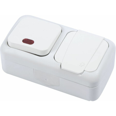 накладной блок, горизонтальный, 1 розетка, с крышкой, 1 клавиша, подсветка, IP54